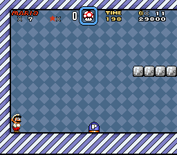 시작하자 파란색 POW가 나온다. 이건 위에서 부딪히면 눌러지고, 잡을 수 있는데, 누를 경우 동전과 갈색 블록이 서로 형태가 바뀌고, 숨겨진 동전, 물음표 블록, 문이 생겨나지만 시간제한이 있다.