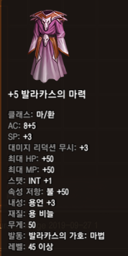 원거리 대미지와 DEX 스탯 뿐만 아니라, 최대 MP 옵션까지 있어