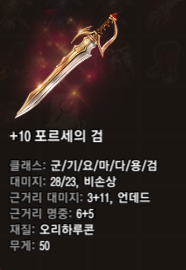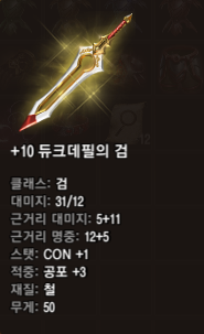 바로! 7월 17일 업데이트된 신규 클래스 '검사'가 착용하는 한손검 아이템을 가져 왔습니다.