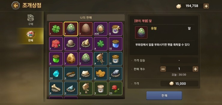 알을 모아 팔고있다. 스톤에이지 만모에이지