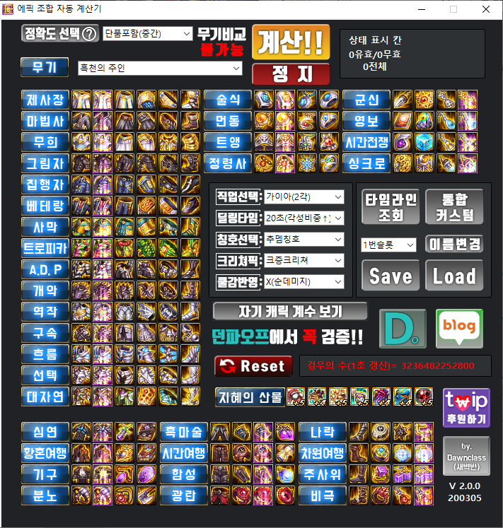 [던파][꿀팁TIP] 에픽 조합 계산기 V 2.0 정식판