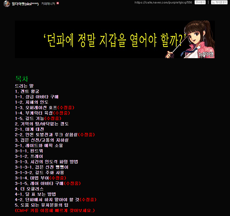 [던파]말머리 [꿀팁TIP] 던린이 필독 게시물이 되었으면 합니다.