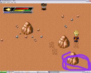 그리고 z박스 튀어나온곳에서 밑으로 1번오면 동그라미친 바위를 기공파로 부수면 2번째 스위치가 나온다 밟아주면 황금으로 막은것중