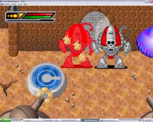 대포로 해골같은 로봇을 죽인다 오른쪽도 똑같이 대포로 쏴서 죽이자(그냥 안으로 들어가면 대포로 쏜다)