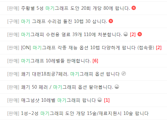 신규재능 마기그래피가 업데이트 됨에 따라 수련 재료들 가격이 미쳐 날뛰고 있는 만큼, 혼란을 틈타 짧고 빠르게 돈을 벌 수 있는 방법을 소개드리고자 합니다(수련 2배주간,마기그래피 업데이트 초기 한정. 지속적인 돈벌이 수단은 아닙니다.)