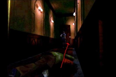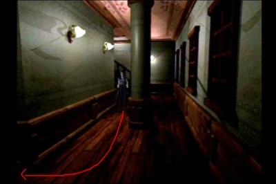 벽난로 위의 낡은 방패문양을 입수한후 케네스의 시체가 있던 복도로 이동하자