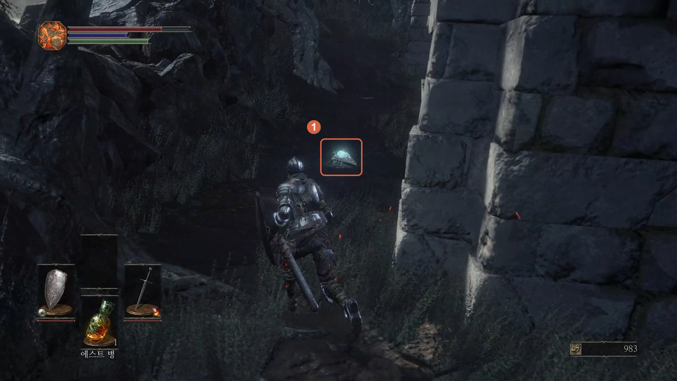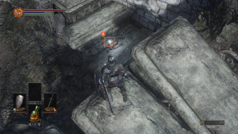 나와서 바로 우측으로 틀면 아래쪽에 아이템을 발견할 수 있습니다.