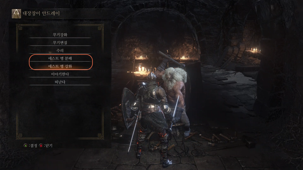 안드레이는 장비 강화, 변질, 에스트병 강화를 담당합니다.