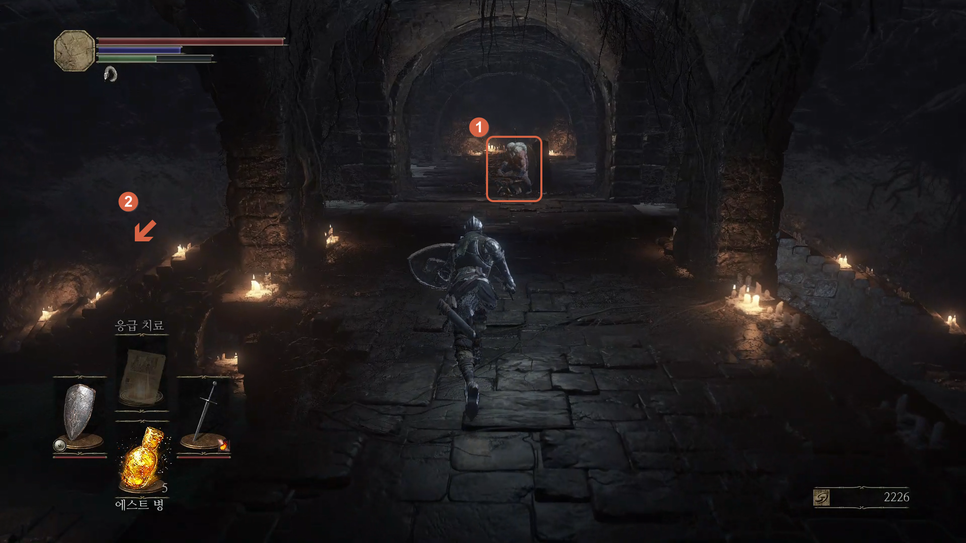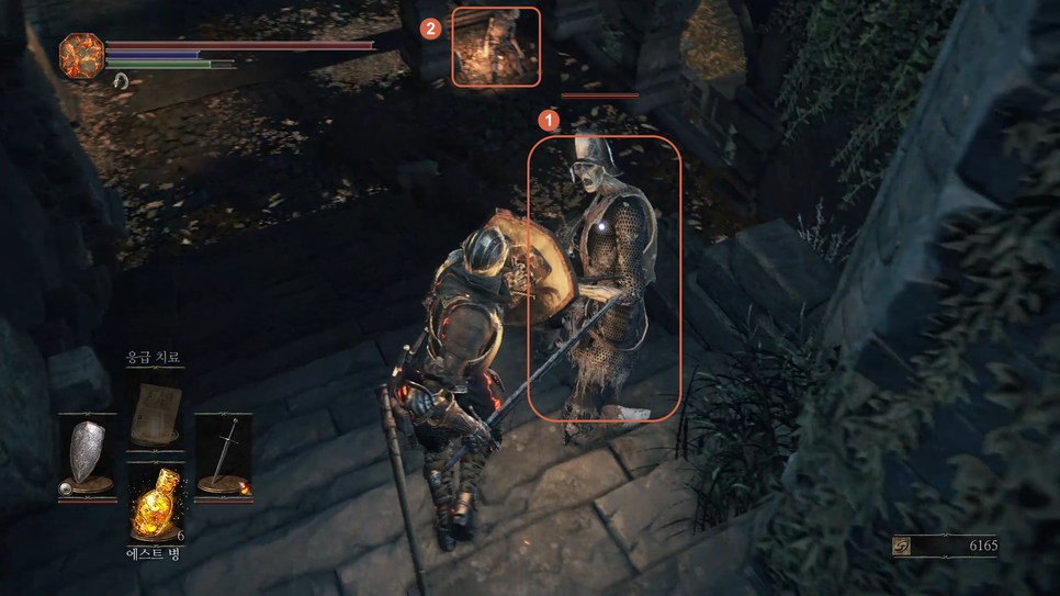 로스릭 기사는 무시, 1번 몹 처리하고 내려갑니다.