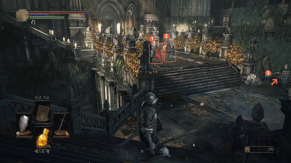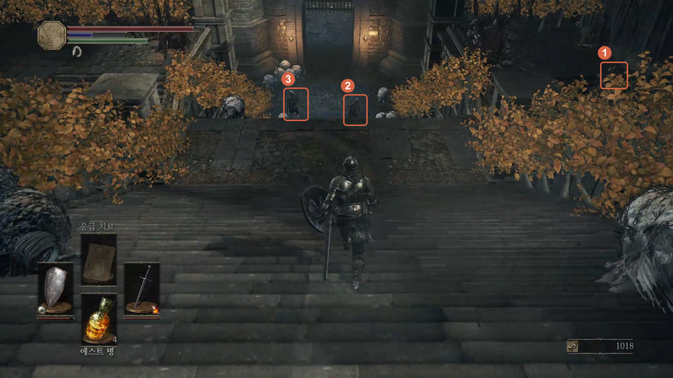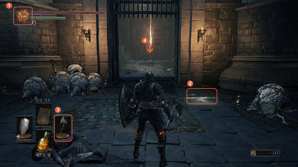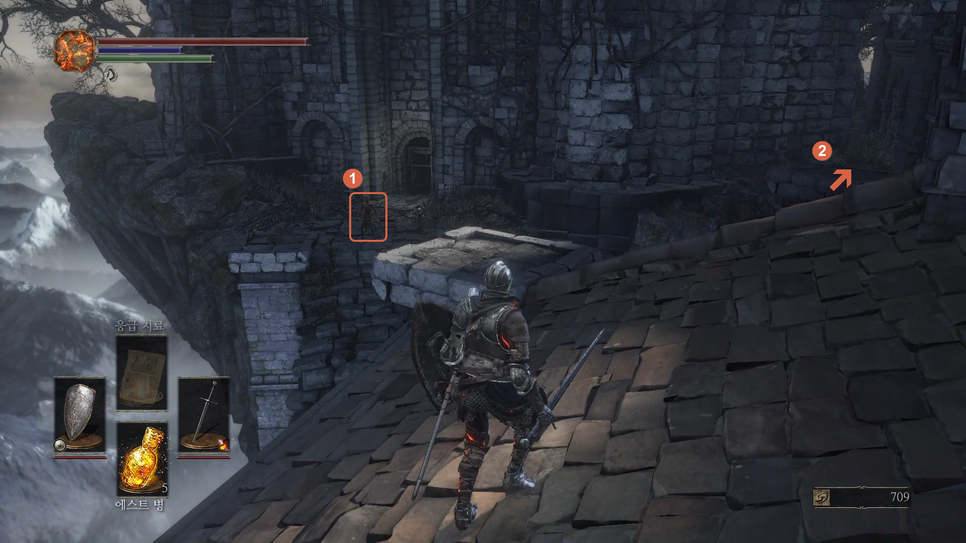 이 앞으로는 로스릭 기사들과 보스가 있기에 죽었을 경우 이런 방법으로 빠르게 올 수 있습니다.