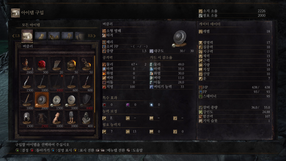 패리용 방패로 소형방패 "버클러"를 하나 구입해 둡시다.