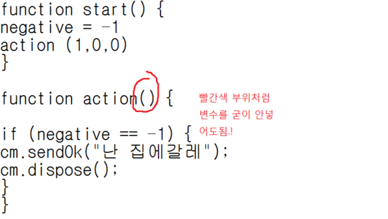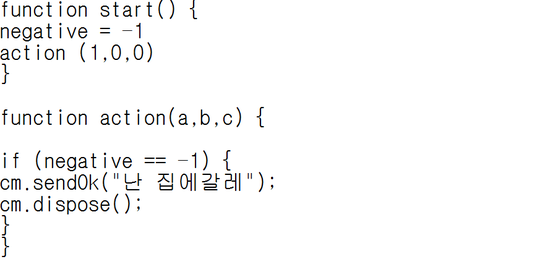이 코드를 실행하게될경우 negative값이 -1이라서 무조건 if문조건에 맞게되어 cm.sendOk를 출력하게됩니다.