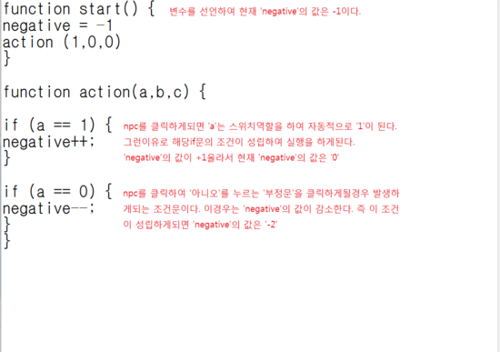 npc를 클릭하면 자동으로 a가 '1'이되고. 이걸 취소하는듯한 부정문을 누르면 a는 '0'이된다.